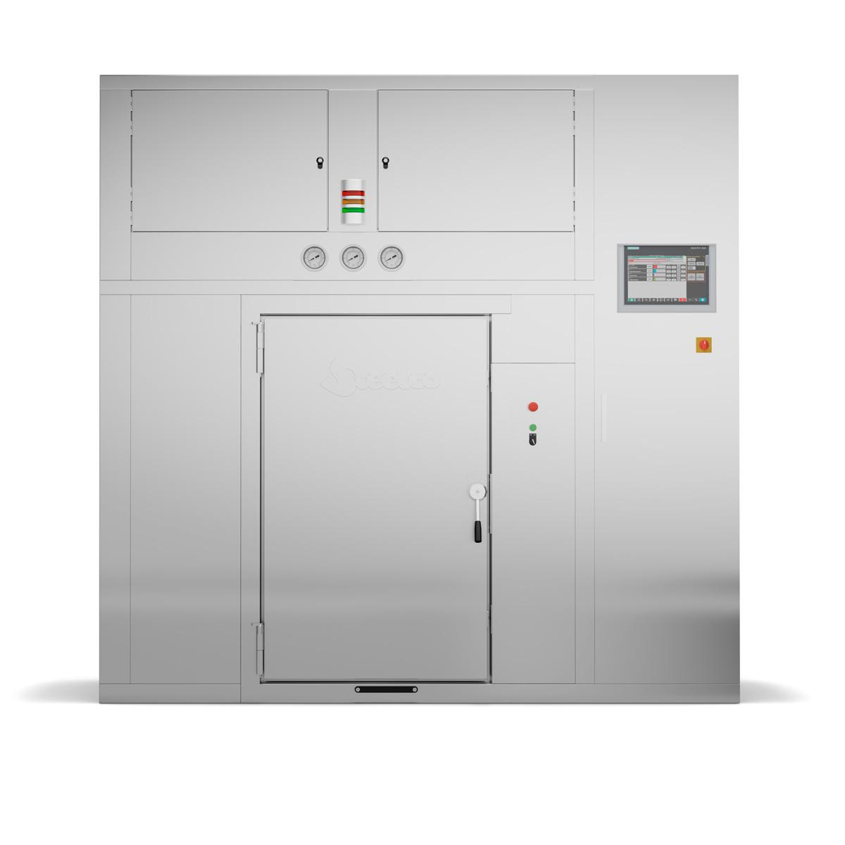 Available in single or double door pass-through hinged door version, the devices feature chamber volumes from 330 to 10.000 liters (11.7 to 353 cu ft). On request and previous Steelco approval shall be possible to require customized chamber dimensions.