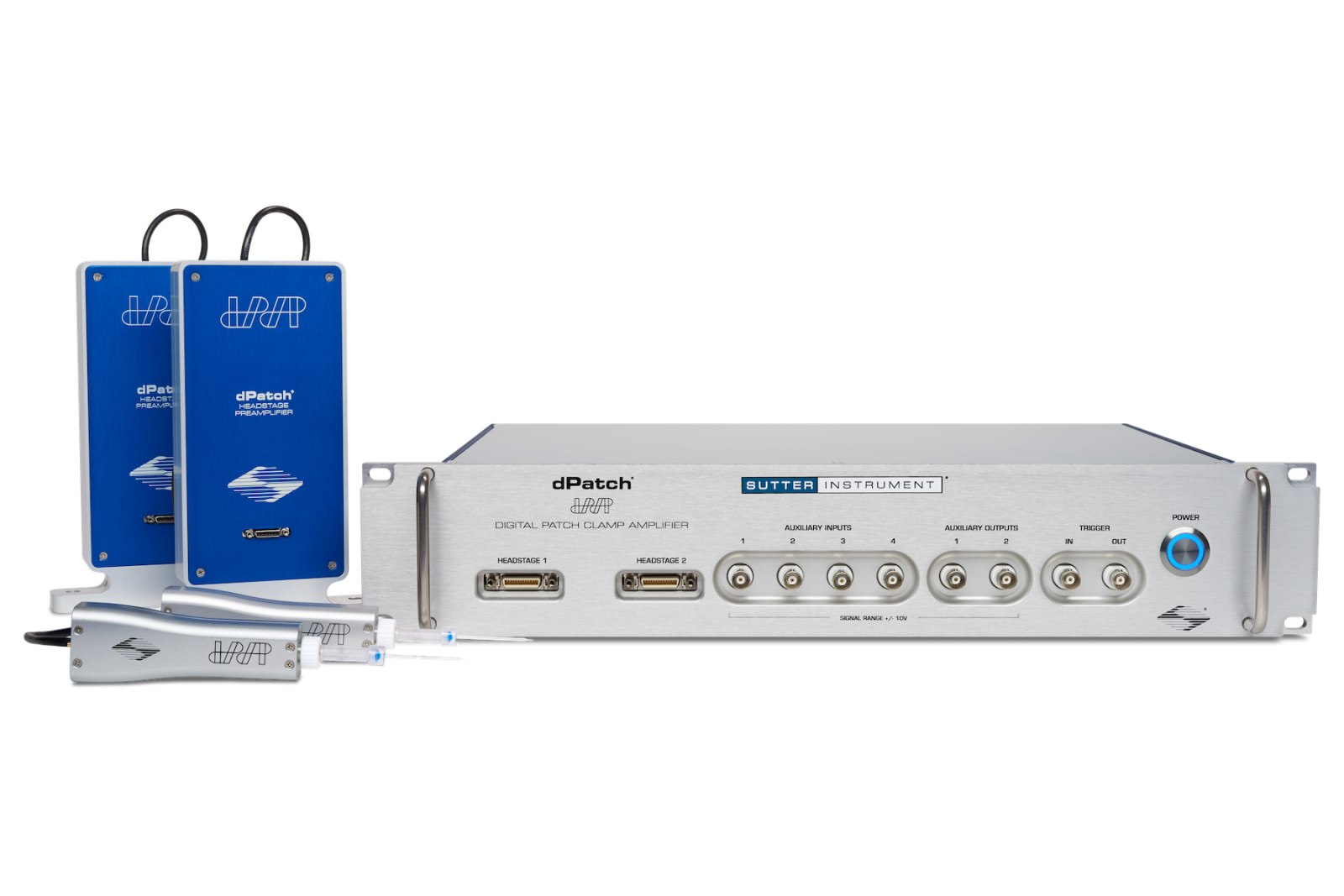 - DPATCH-2 dPatch pojačalo sustav s dvije glave i pretpojačalima, dvama EH-P170 držačima pipete, dvama modelima stanica, vijčanim stezaljkama za digitalne izlaze, opremom za ugradnju u rack, SutterPatch® softverom s Igor Pro® licencom