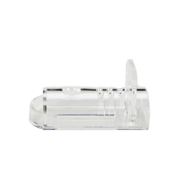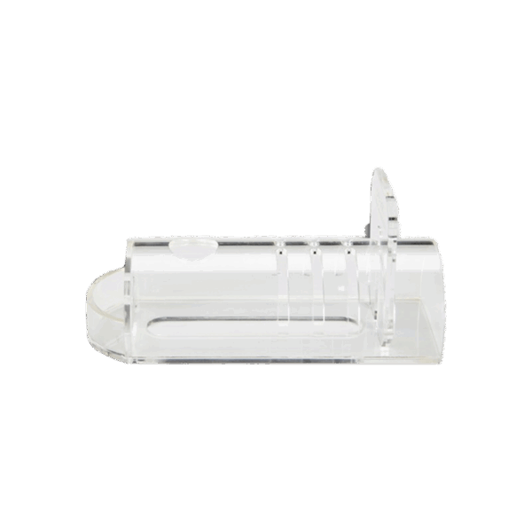 To use, remove the tailgate and position the restrainer so the open end makes a 45° angle with the tabletop. Secure the rodent by the base of the tail and gently guide into the restrainer, forelimbs first. Apply gentle pressure to prevent the rodent from backing out of the restrainer. Once positioned, replace the tailgate into the groove to hold the animal in place.
