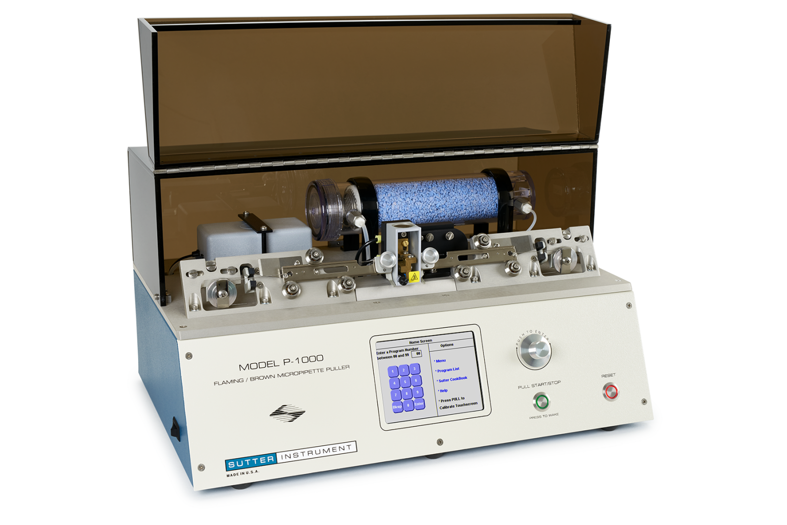 P-1000 je Sutter Instrument mikropipetni vlačnik Flaming/Brown nove generacije s kolor zaslonom osjetljivim na dodir, ugrađenim Pipette Cookbook-om s više od 100 unaprijed dizajniranih programa, predgrijavanjem čeljusti ThermoLock™, načinom rada Safe Heat Mode i sveobuhvatnom dijagnostikom. Vuče sve vrste stakla osim kvarca; promjeri vrhova 0,06–3 µm.