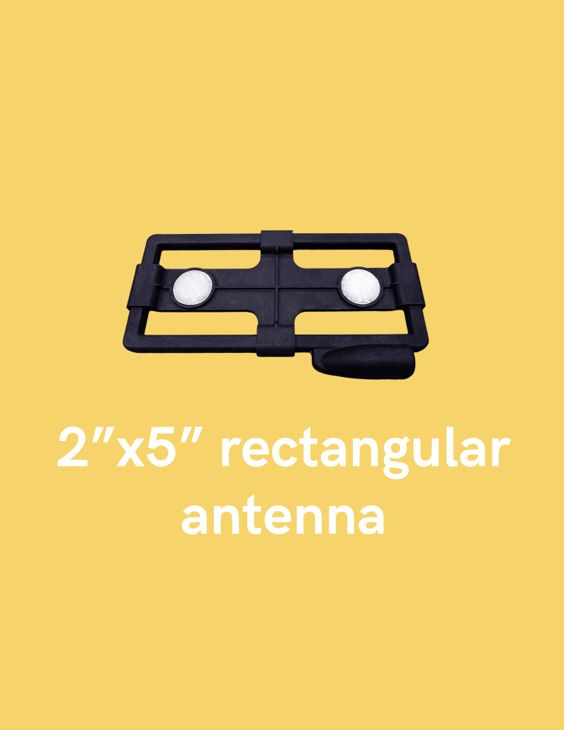 Antennas: two antenna size options: 3″ round antenna, 2″ x 3″ rectangular antenna